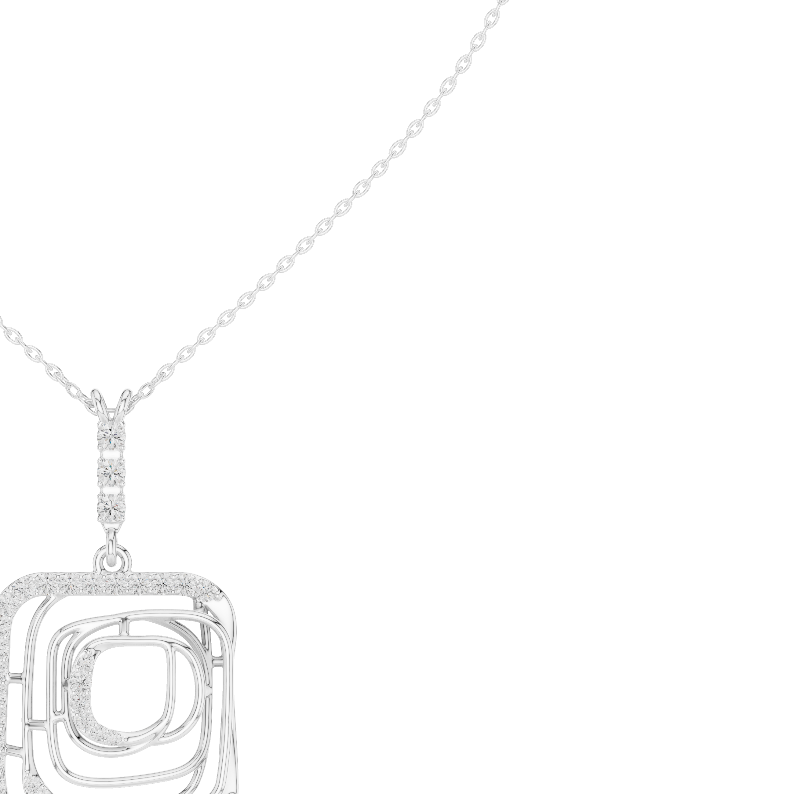 The Aria Geometric Diamond Necklace showcases a bold, artistic pendant with layered open-square patterns encrusted in brilliant diamonds. This contemporary design balances modern structure with timeless sparkle, making it an elegant statement piece for any occasion.